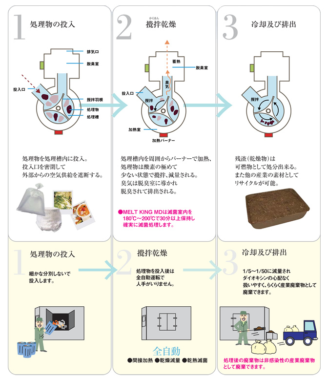 生ゴミ・医療用廃棄物処理機 メルトキング 特長