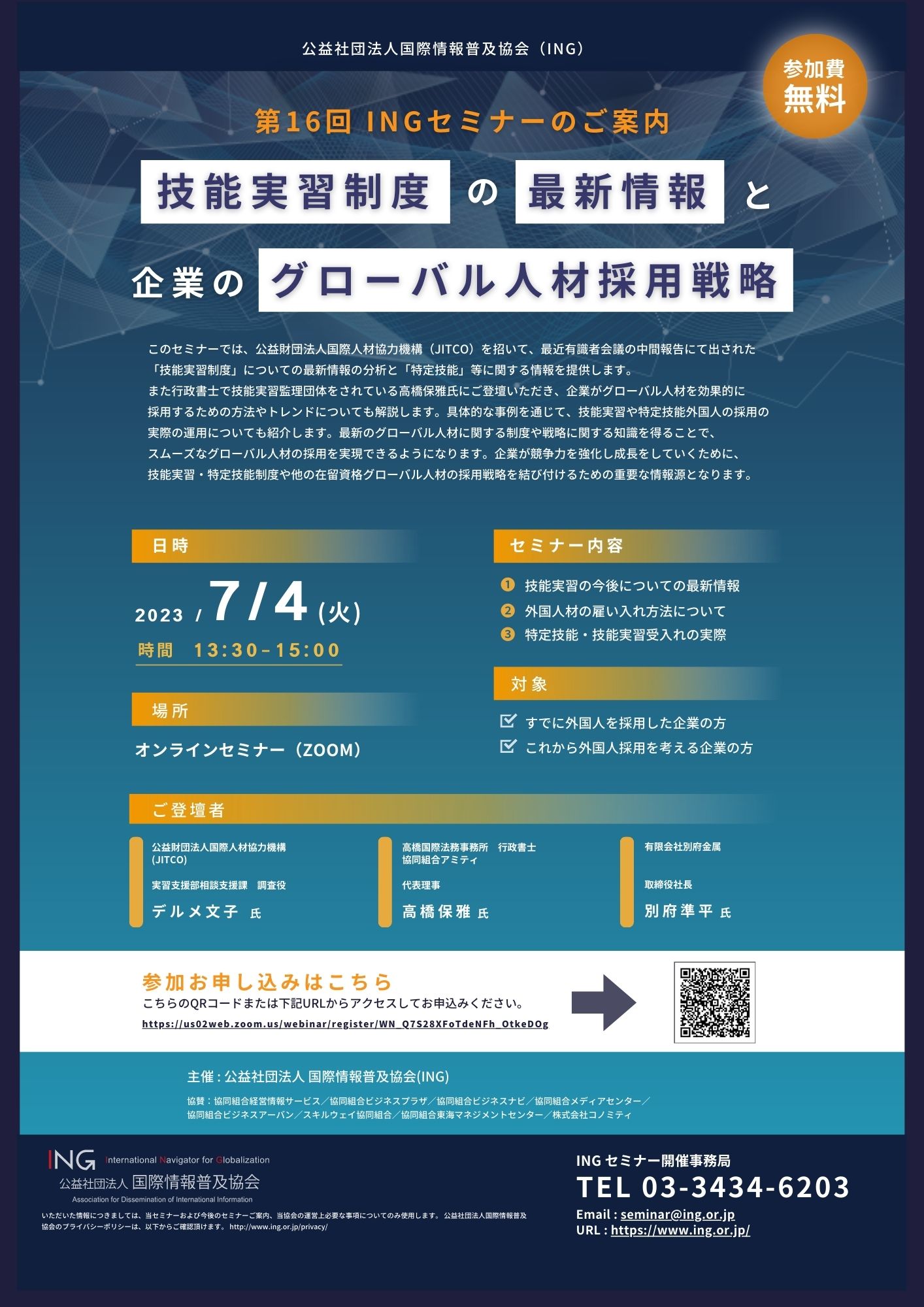 【第16回 INGセミナー】INGセミナーのご案内(7月4日13時30分開始)
